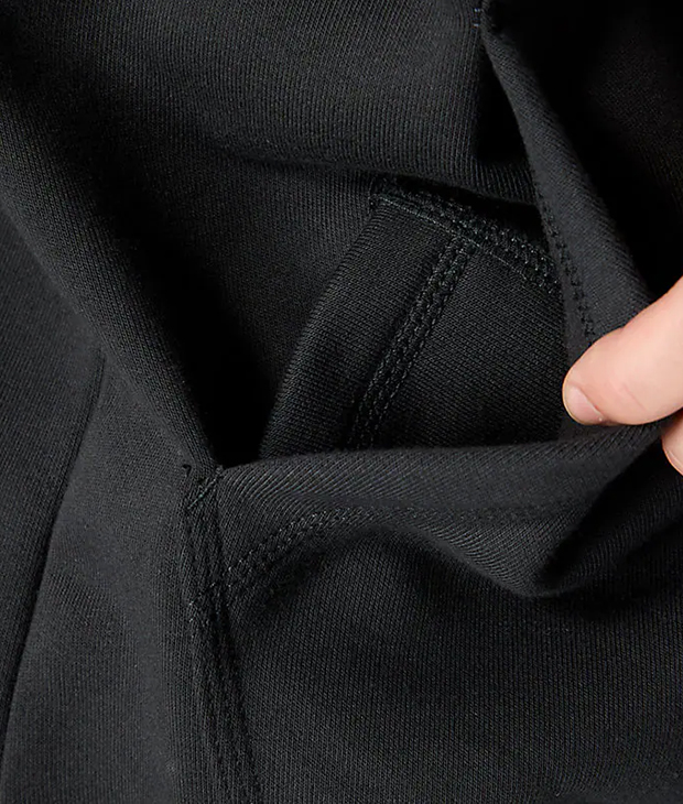 - Front hand warmer pocket with hidden security pocket inside